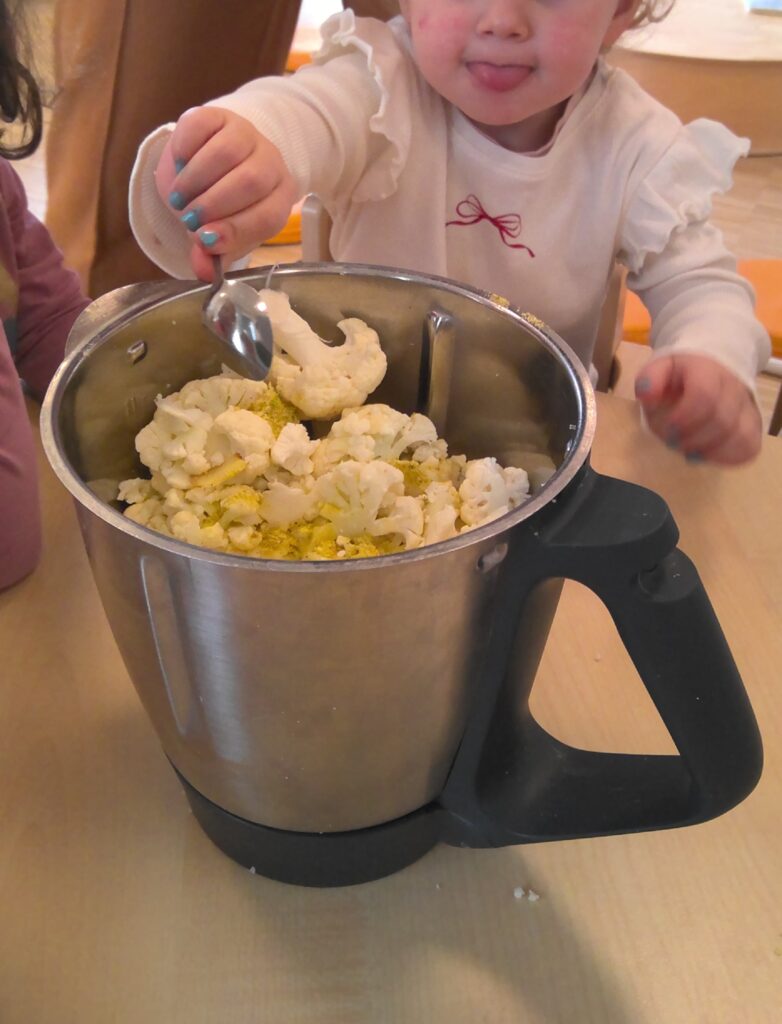 Alle drei Bausteine sind eng miteinander verknüpft. Durch unsere Angebote in der Kita, wie Gartenbau fürs Mittagessen und Kräuter und vieles leckere aus der Natur, trägt täglich zu einer gesunden Lebensweise bei. Die Kinder finden grün nicht mehr eklig oder gefährlich, sondern lecker und wichtig.